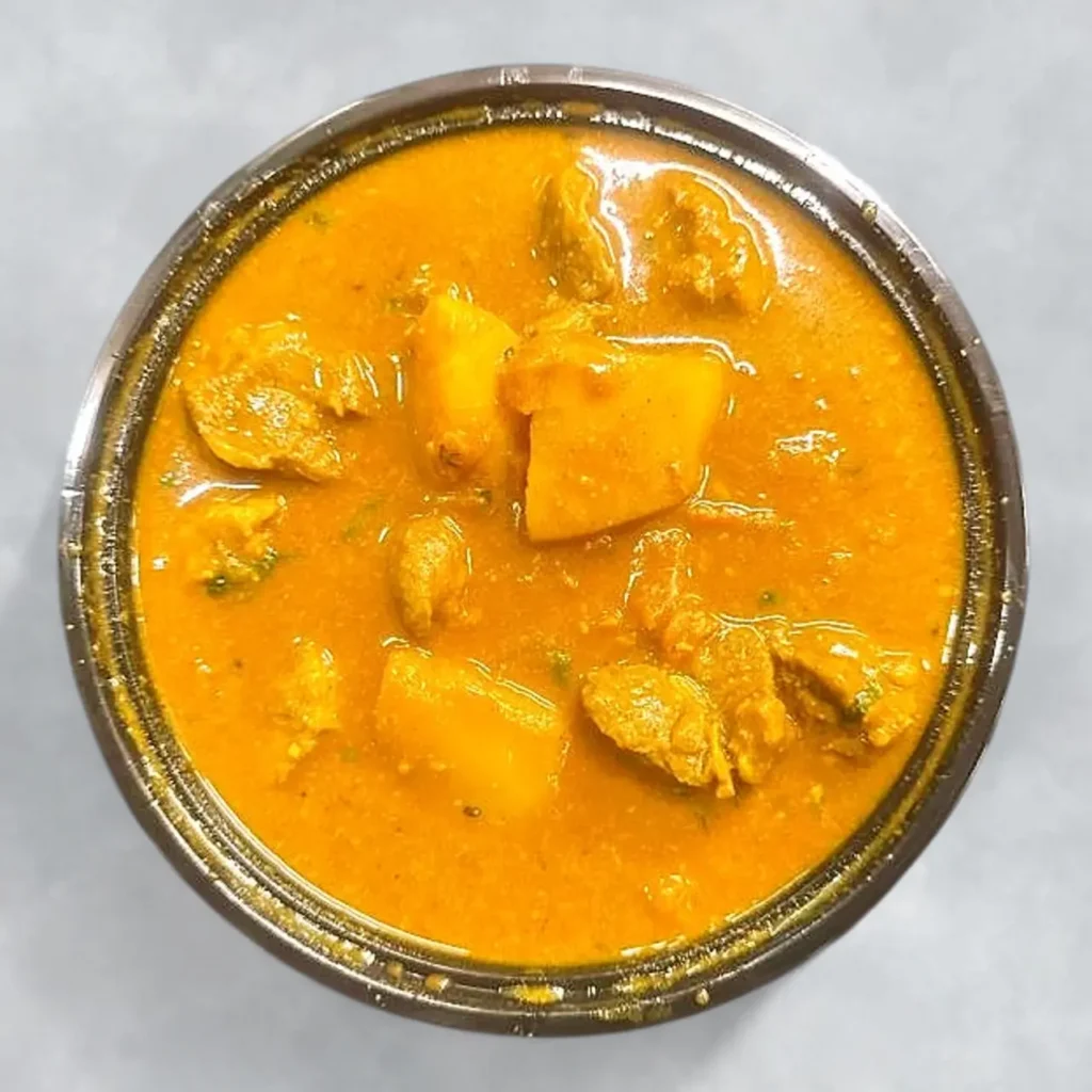 Prepared with cubed potatoes in a mild turmeric sauce with a touch of fresh lemon juice-vinegar mix.